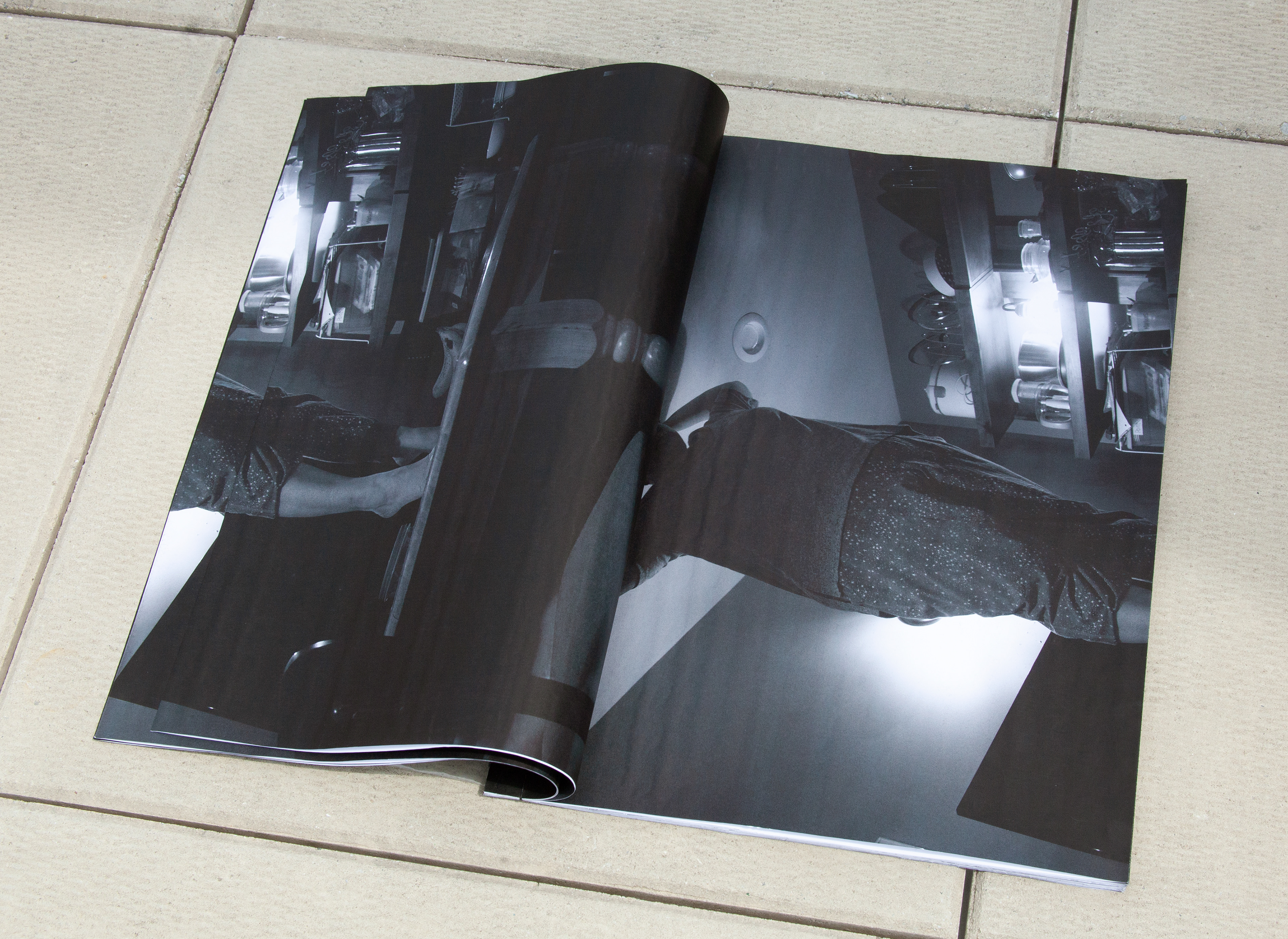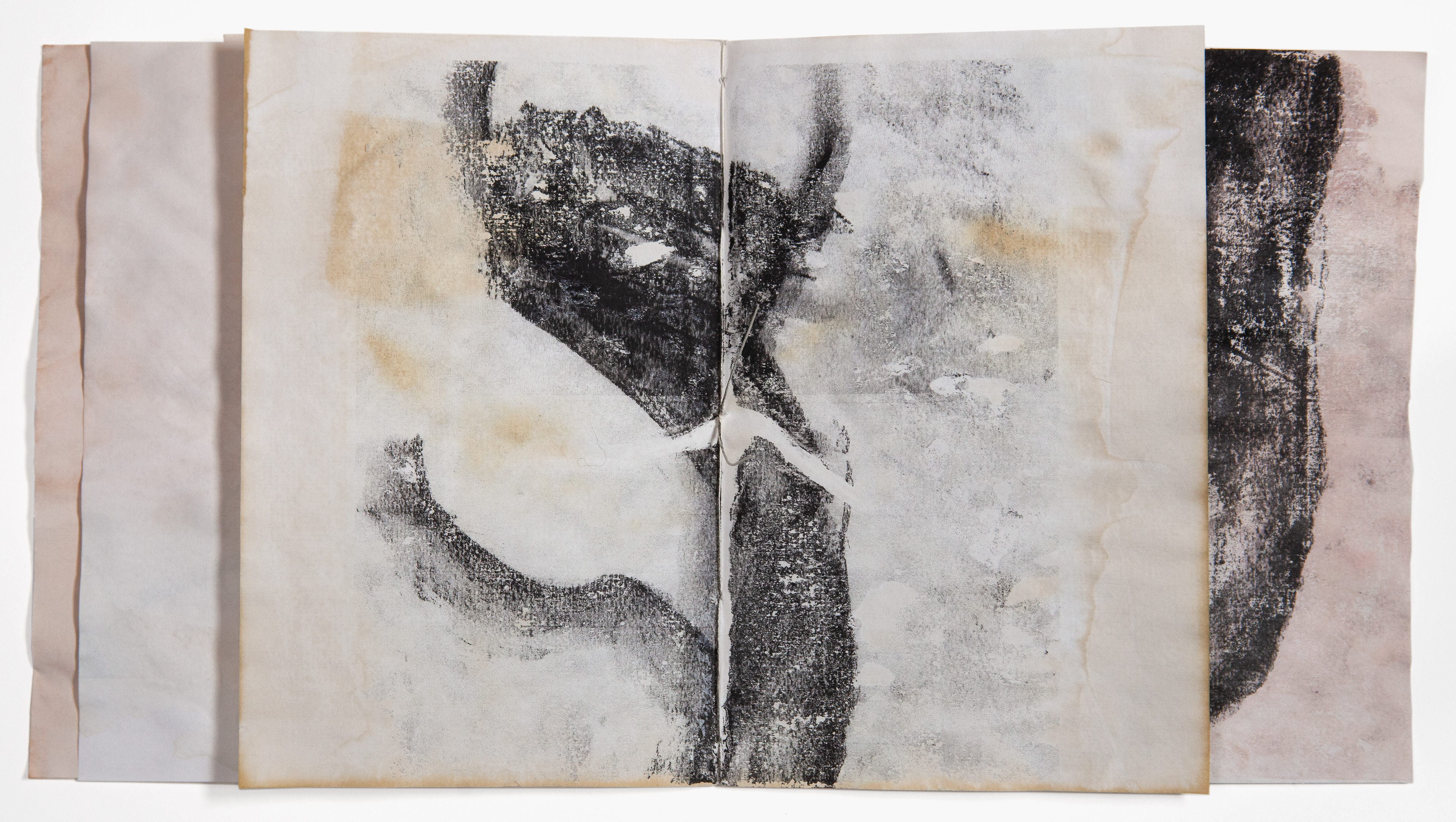 Bound, 2020, Inkjet printed book, linen thread, stab-binding, 20 x 27 inches (open)