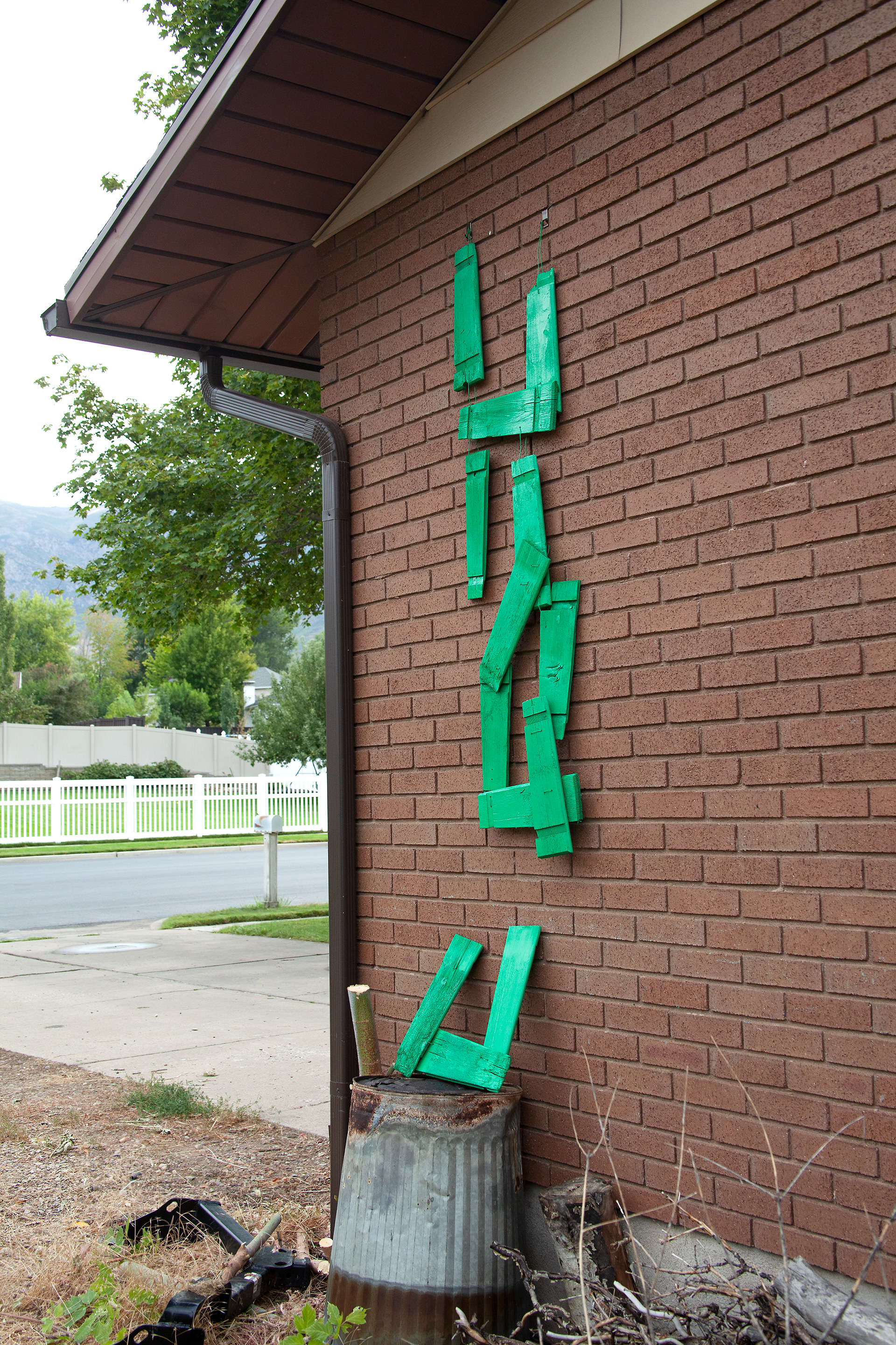 Going on Outside, 2020, wood planter, wire, spray paint, 87 x 18 inches